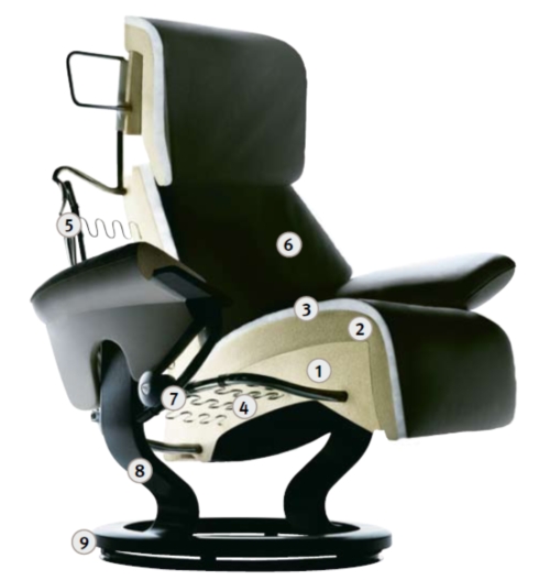- Unique Stressless Glide system automatically adjusts to your body weight and movements.